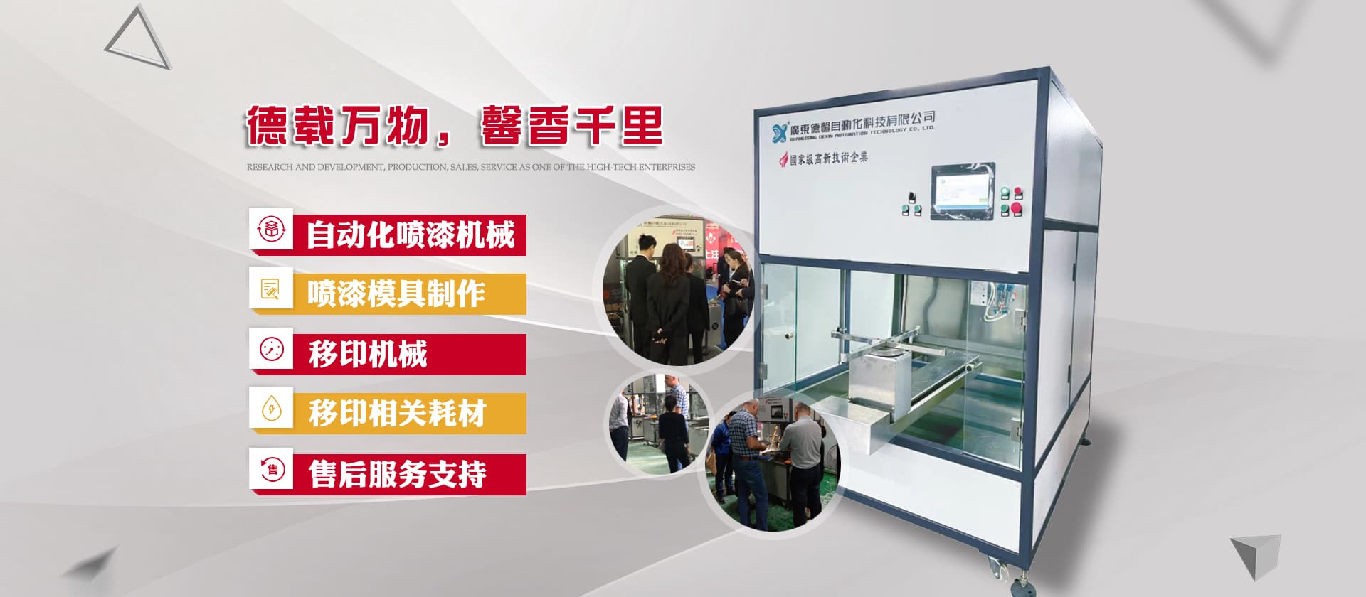 德馨科技創(chuàng)立以來(lái),以改變噴印業(yè)傳統(tǒng)手工生產(chǎn)模式為目標(biāo),產(chǎn)品開發(fā)制造堅(jiān)持以“環(huán)保、智能”為理念,為企業(yè)的生產(chǎn)環(huán)境、人力成本、生產(chǎn)效率等提供更為優(yōu)良的服務(wù)和技術(shù)支持。公司研發(fā)產(chǎn)品主要有自動(dòng)化噴漆機(jī)械、噴漆模具制作等;生產(chǎn)銷售移印機(jī)械及移印相關(guān)耗材,包括菲林設(shè)計(jì)輸出;鋼板制作、移印膠頭制作、定位制作及周邊配件耗材并提供完善的售后服務(wù)支持。